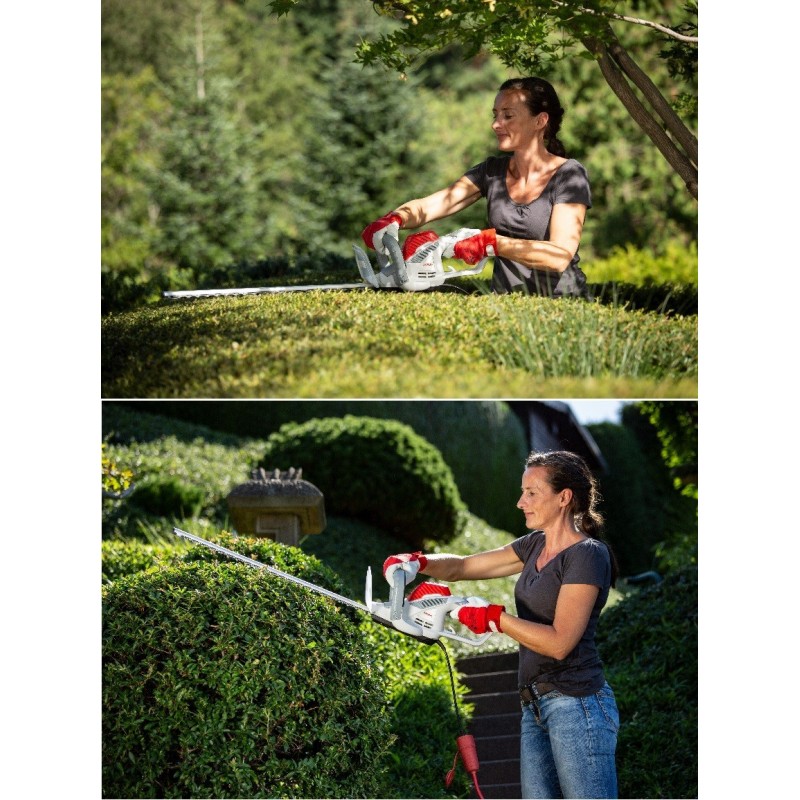 Ikra Mogatec hedge trimmer IHT 550 is an extremely powerful, high-quality product with an updated design from Ikra GmbH, which will make cutting hedges a pleasure. Thanks to the powerful 550W motor and the diamond-sharpened cutting blades made at the Mogatec factory in Germany, this tool will make you feel like a real garden care professional.