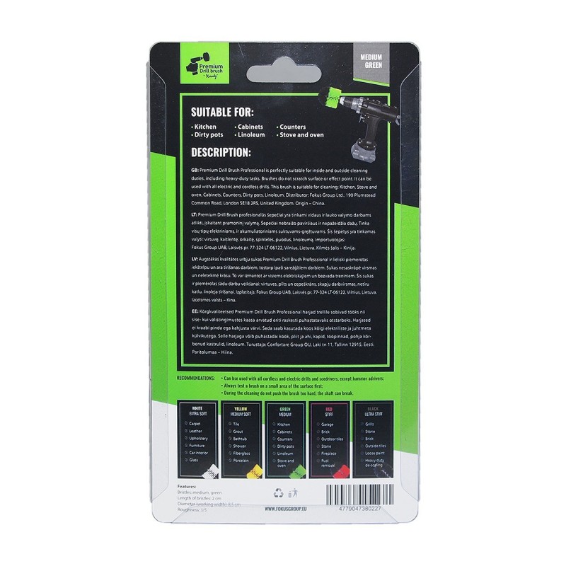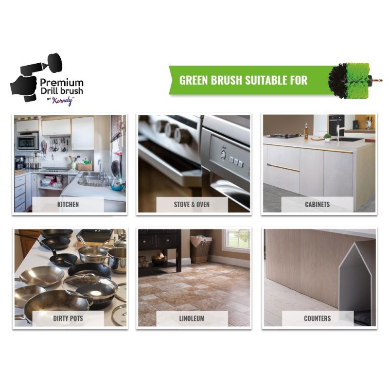 Kornely Premium Drill Brush Professional ir īpaši izveidots, lai ātri un izcili izpildītu dažādus tīrīšanas pienākumus. Augstākās kvalitātes urbju birstes ir lieliski piemērotas tīrīšanas darbiem iekšpusē un ārpusē, ieskaitot lieljaudas darbus. Birstes nesaskrāpē virsmu un neietekmē krāsu.
