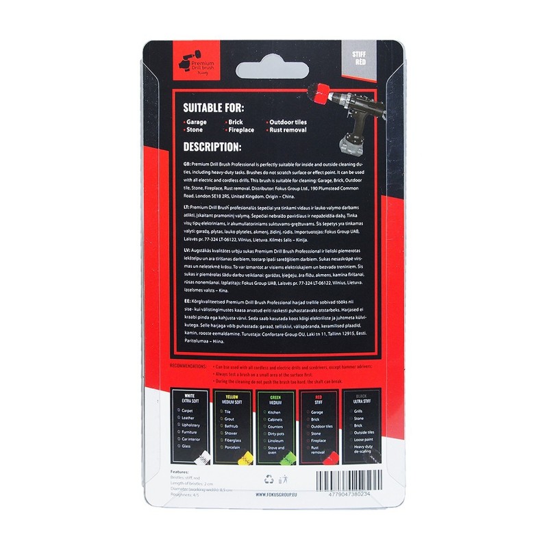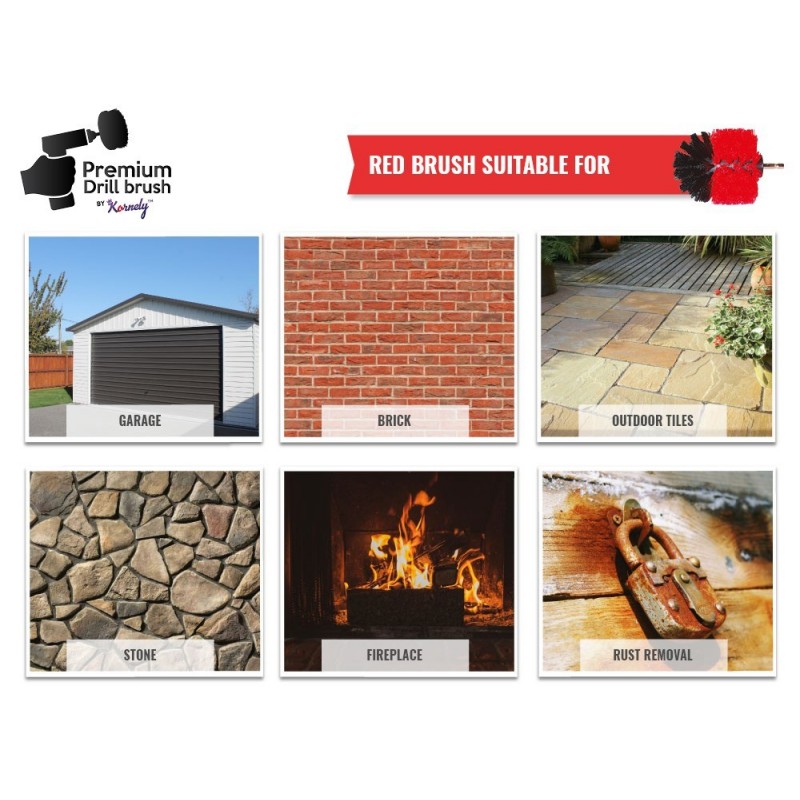 Kornely Premium Drill Brush Professional ir īpaši izveidots, lai ātri un izcili izpildītu dažādus tīrīšanas pienākumus. Augstākās kvalitātes urbju birstes ir lieliski piemērotas tīrīšanas darbiem iekšpusē un ārpusē, ieskaitot lieljaudas darbus. Birstes nesaskrāpē virsmu un neietekmē krāsu.