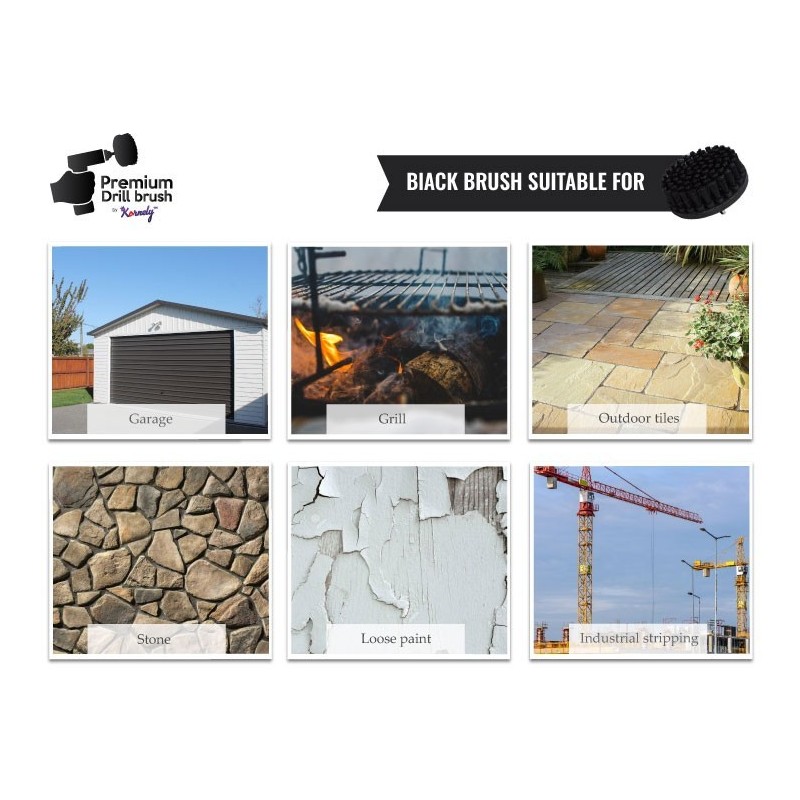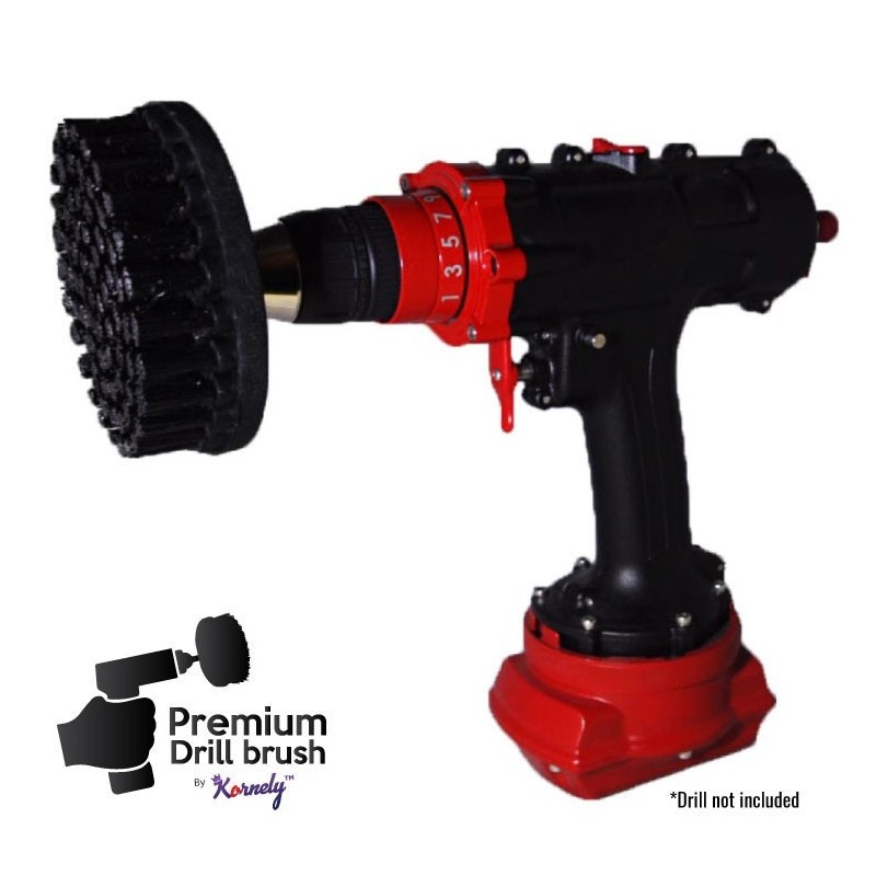 Kornely Premium Drill Brush Professional ir īpaši izveidots, lai ātri un izcili izpildītu dažādus tīrīšanas pienākumus. Augstākās kvalitātes urbju birstes ir lieliski piemērotas tīrīšanas darbiem iekšpusē un ārpusē, ieskaitot lieljaudas darbus. Birstes nesaskrāpē virsmu un neietekmē krāsu.