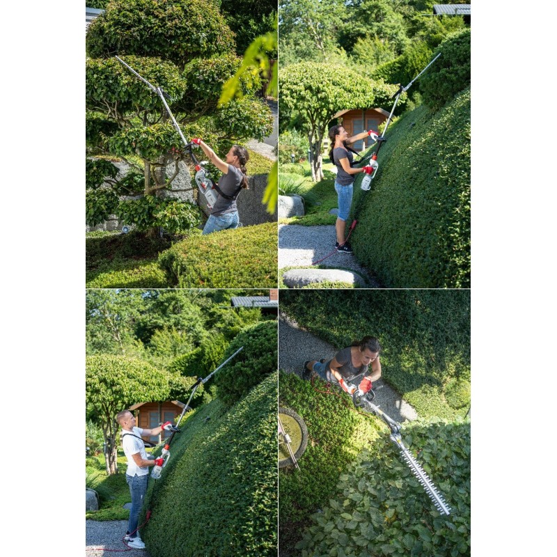 IECH 1000 ir lielisks risinājums tiem, kas vēlas, lai viņu pagalmā būtu gan dzīvžogs, gan koku atzarotājs. Ierīce 2in1 ietaupīs jūsu krātuves vietu un naudu. Instruments var apgriezt zarus ar 7 pozīciju griešanas leņķi ar zemas vibrācijas ķēdi no Oregon komplekta. Dzīvžogu šķēres asmeņi ir divējādas darbības.